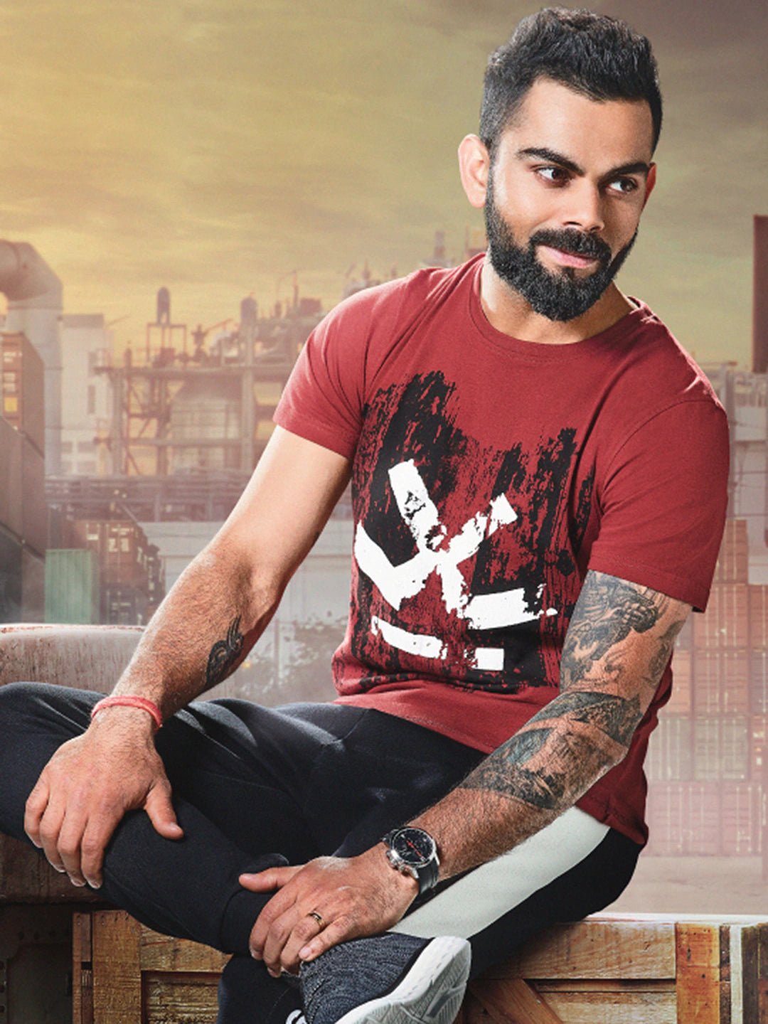 Rust red high-density print waist length T-shirt, has a round neck, short sleeves